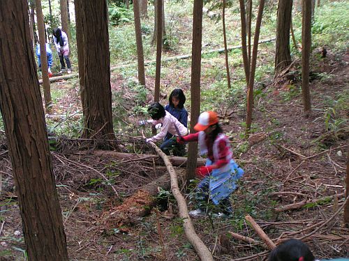 うまく切り倒すことができたら、今度は枝狩りです。枝の数も多いので、こちらも子供たちには大変な作業のようでした。