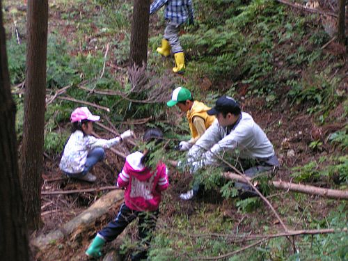 子供たちを3班にわけて、早速、近くの山に入ります。