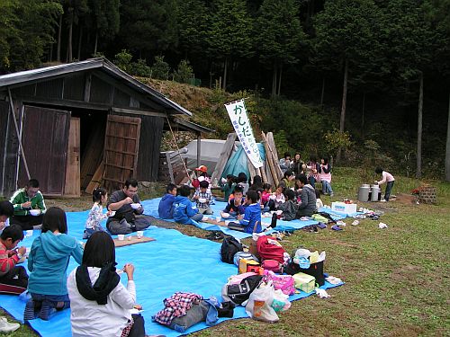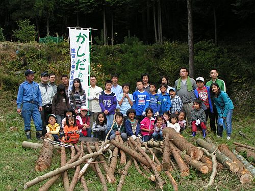 2009年10月24日(土)午前、樫田某所に集合。児童16名を含む総勢30名を超える参加です。おやじ会会長の挨拶に続き、使用する道具の特徴や注意事項を子供たちに説明していきます。