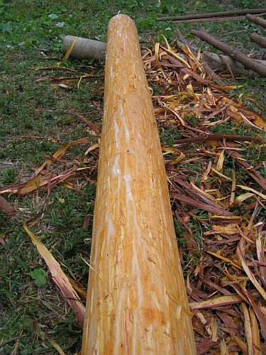 きれいにむいた木の状態。これを時間をかけて乾燥させていきます。