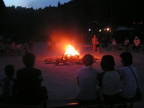 夕食後は、これも定番ですね。キャンプファイヤー。でも、まだ火はついていません。