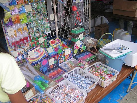 こちらは「あてものコーナー」。100円でくじを引きます。どれが当たるかはお楽しみ。