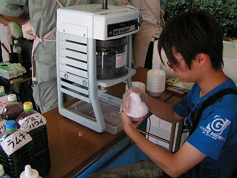 二日目もかき氷器はフル稼働。暑い天気でよく売れました。