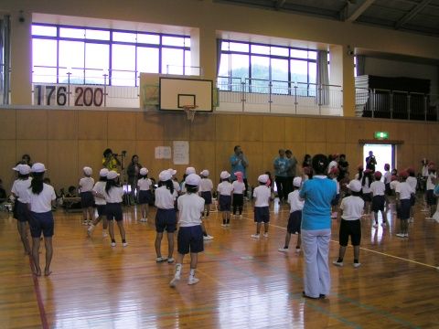 結局、予報通り、昼前には本格的に降り始めてしまいました。しかし、樫田小は他の小学校とはちょっと違う。昼休みを挟んで体育館で続行します(というか、できるのです)。小規模校ならではの柔軟性があります。