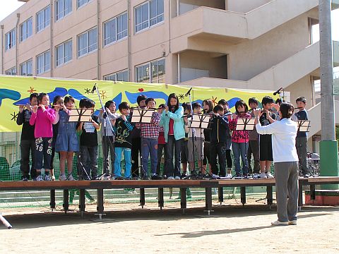 樫田小の低学年は運動会でのダンスを、高学年は篠笛の演奏を披露しました。