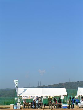 販売開始前は「この暑い中、うどんはそんなに売れんだろう」と高をくくっていたのですが、いざ始まってみたら、この行列!左側がおやじさんたちの「うどんそば」、右側がお母さんたちの「白玉ぜんざい」です。