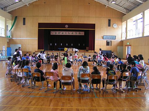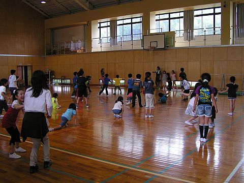 今年は大人も参加して、みんなで「フルーツバスケット」をしました。座れなかった大人は、罰ゲームとして輪の中で『ドドスコ・・・♪』っと踊っていました。
