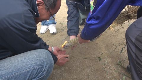 仕方がないので、おやじさんたち、竹の足を切り始めました。