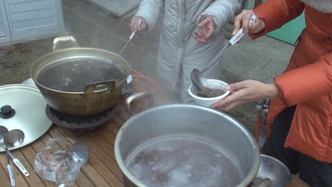 焼いた餅はぜんざいにして、暖を取りつつ、おいしくいただきました。
