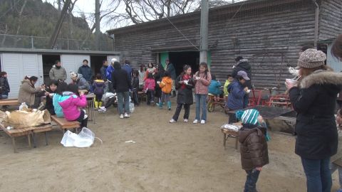 今年も子どもたちの健康を願って、樫田の山に住むオニさんが2012年2月3日(金)、樫田小学校に現れました。昨年は最低気温マイナス8度の日だったのですが、今年はマイナス11度だったとか。