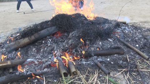 竹の長さが影響して、上まで炎が燃え上がってくれません。長すぎた竹とわらの詰め込み不足が原因でした。