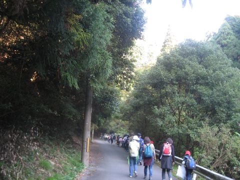 出灰の道をのんびりと。ここまで下山してくると、みんなホッコリ気分です。