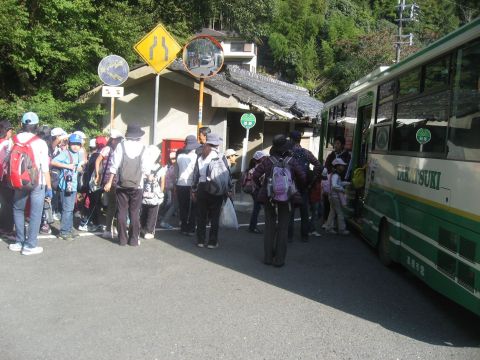 出灰バス停に到着。スマイルさんたち(市内からのバス通学者)は14時のバスで帰ります。