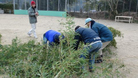 さて、当日の朝8時、まずは竹を切り出すことから始まります。写真で見ると大したことないように見えますが、