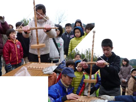 恒例、かしだおやじの会 大とんど焼き大会。樫田小学校グランドで、2013年1月12日(土)午前10時30分開始です。