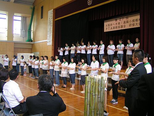 2010年7月3日(土)、第27回大阪府へき地・遠隔小規模校PTA連絡協議会研修大会が樫田小学校にて開催されました。今回は研修大会の模様をお伝えしたいと思います。この協議会には大阪府下9校の小中学校が加盟しており、毎年この時期に研修大会を実施しています。