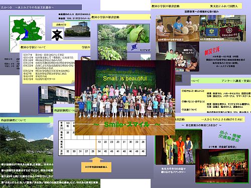 手話コーラスの後は、実践活動報告です。樫田小と能勢町立田尻小学校の2つの報告が行われました。樫田小の報告では、高槻市や樫田地区の紹介、樫田小の歴史から年間を通しての行事等の紹介、そして特認校制度の紹介と現状を中心に報告が行われました。