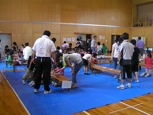さて、24日午後、体育館に集合してサマースクールの開会式です。このとき、PTA会長が「今日、学校に泊まれるのはお手伝いしてくれる保護者の方々のおかげです。お礼を言いましょう」と、子供たちに促しました。物事の始めに、まず感謝の意を伝える、ということはすごく良いですね。