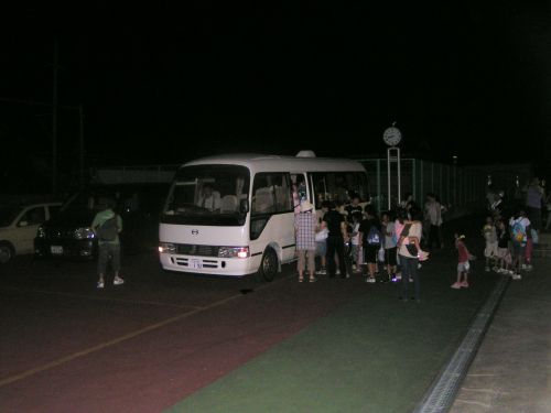 キャンプファイヤーの後は、樫田浴場へ入浴に出発。入浴後は就寝準備なのですが…