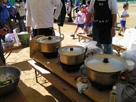 さて、おやじさんたちは...大きな鍋を持ち込んで、何をしているかと。