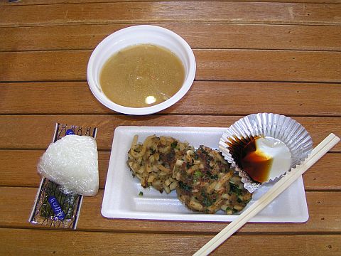 昼食の献立は「うどん餃子」と「おにぎり」、「豚汁」です。皆でおいしく戴きました。