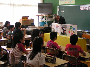 2011年6月5日(日)、樫田小学校では日曜参観が行われました。今年も長さん先生のウェルカムボードが出迎えてくれました。昨年よりバージョンアップしてますやん。